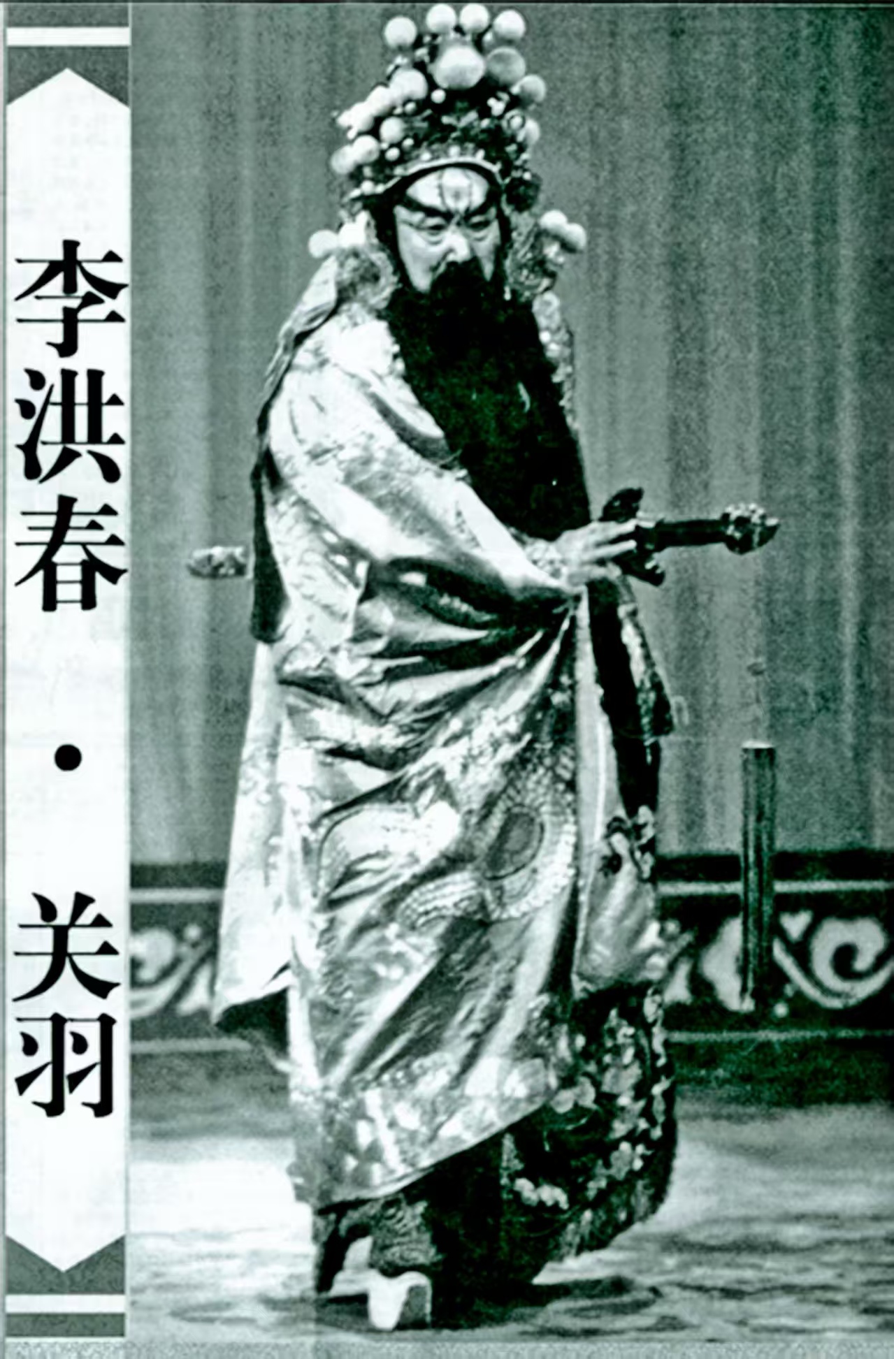 相关链接:李洪春(1898年-1991年),原名李春才,著名京剧表演艺术家、教育家、关剧宗师,李派红生艺术创始人,出生于中国北京市,祖籍江苏省南京市,后迁山东省无棣县佘家巷乡李官庄。7岁入“长春科班”学艺,拜在小生陆华云名下学艺,工武小生。11岁拜谭鑫培弟子刘春喜为师,学谭派剧目。