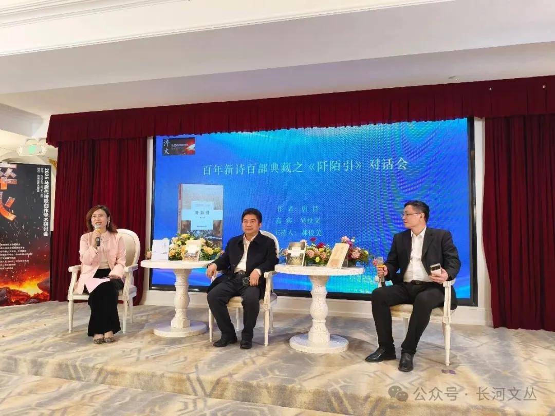 夜幕降临,研讨会系列活动再添亮点。“百年新诗百部典藏”“首套长河双语诗典”部分诗集学者对话会温情启幕。郝俊美全程主持九场对话,马启代《暂住》、唐诗《阡陌引》、南鸥《渴望时间最后的修饰》、吴投文《秋风起》、林之云《果然》、周永《底色》、朱建信《危险姿势》、散皮《时间的物质》等诗集的作者与与会嘉宾围坐交流,畅谈创作心路、文本建构与出版初心,让学术研讨在诗意互动中延伸内涵。