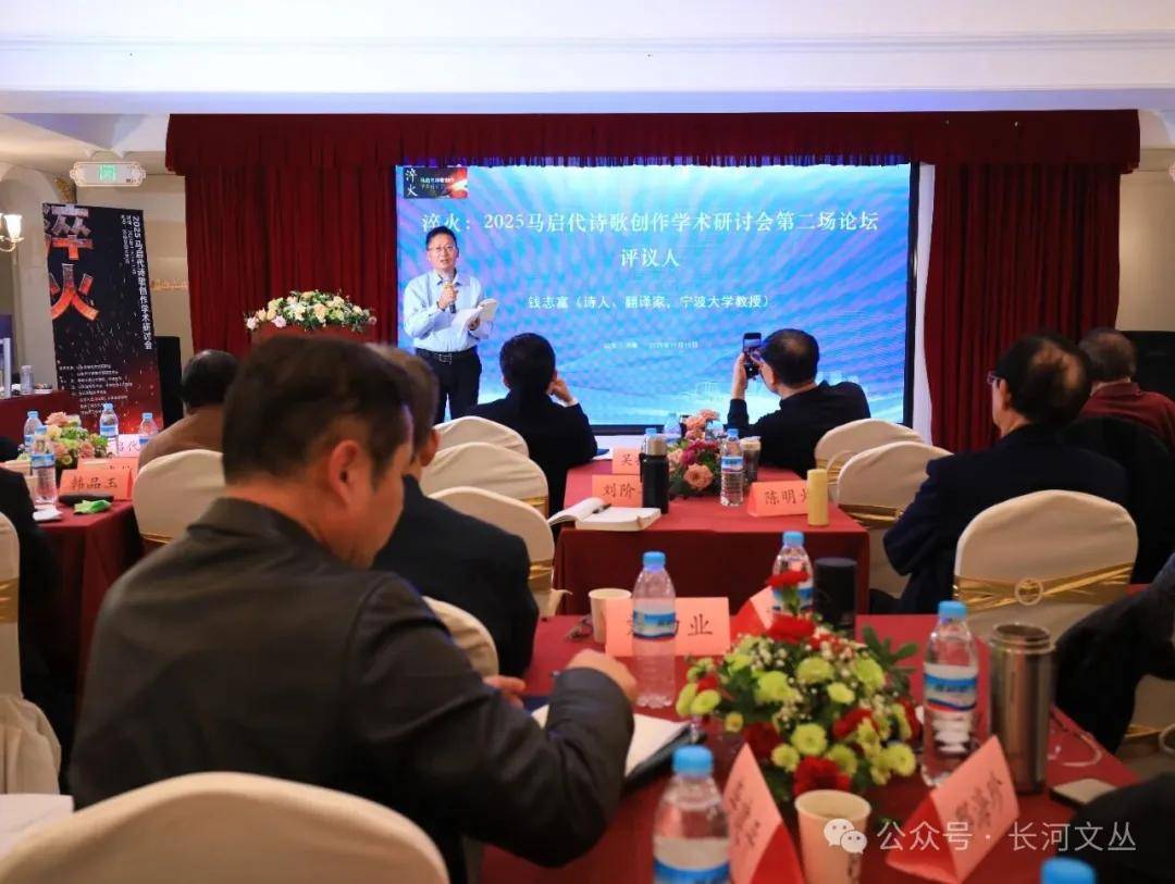 学术研讨共分三场进行。上午进行的第一场,由中诗在线总编、贵州诗歌学会会长南鸥主持。博士生导师、山东大学文学院副院长马兵,博士生导师、扬州大学外国语学院教授张小平,评论家、山西师范大学副教授刘阶耳,诗人、湖北作协委员陈明火,诗人、山东政法学院教授林之云,翻译家、宁波大学教授钱志富,评论家、山东大学诗学高等研究中心副教授马春光,评论家、合肥师范学院副教授李建平,山东劳动职业技术学院教授、中诗在线山东频道站长周永等,分别从诗学思想、语言艺术、时代印记、精神内核等视角,对马启代四十年创作进行深度解构与精准评析,字字珠玑间满含学术认同与艺术敬意。评论家、湖南科技大学教授吴投文对本阶段发言进行总结述评,既提炼核心观点,又提出拓展思考,让研讨热度持续升温。