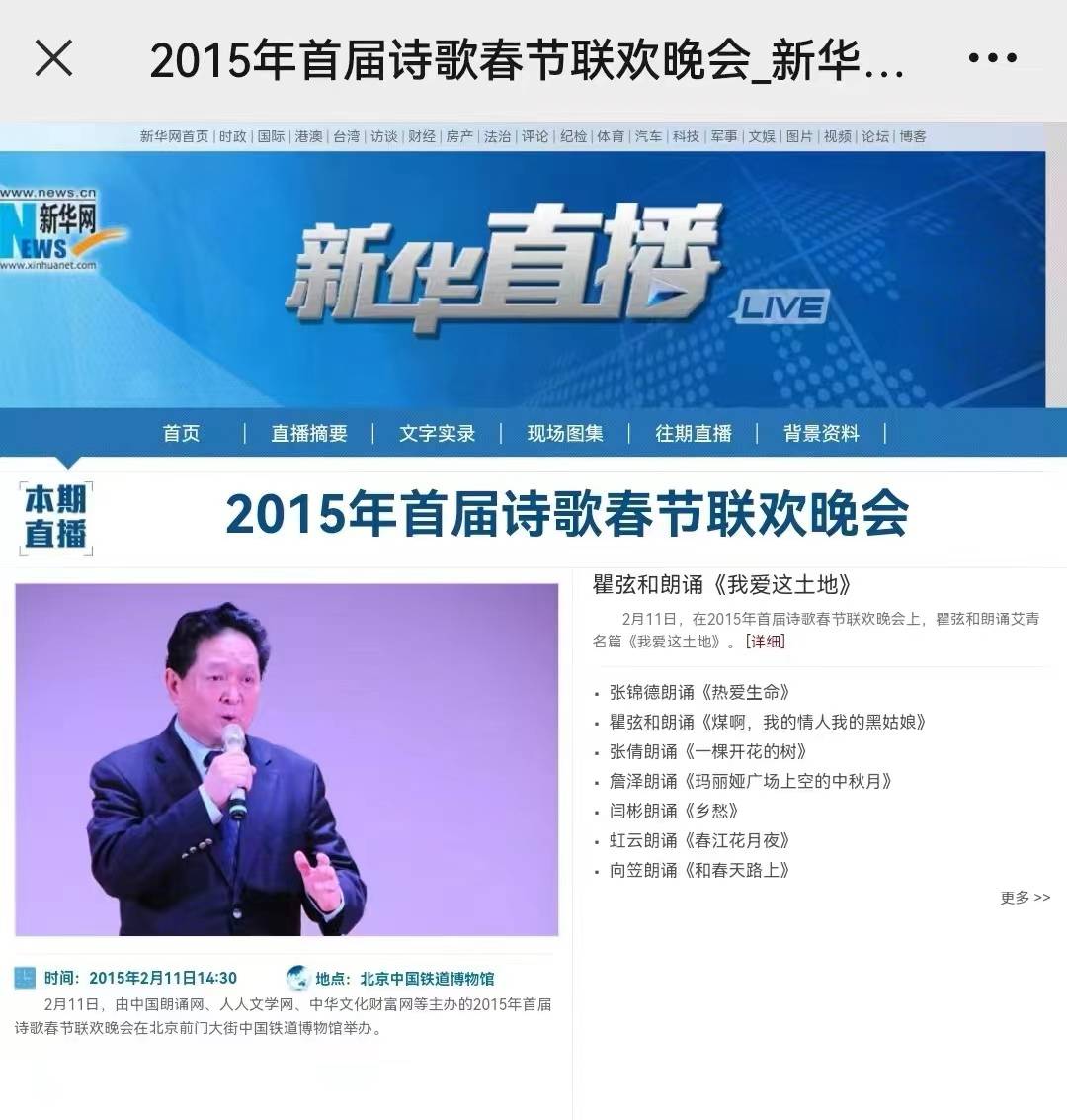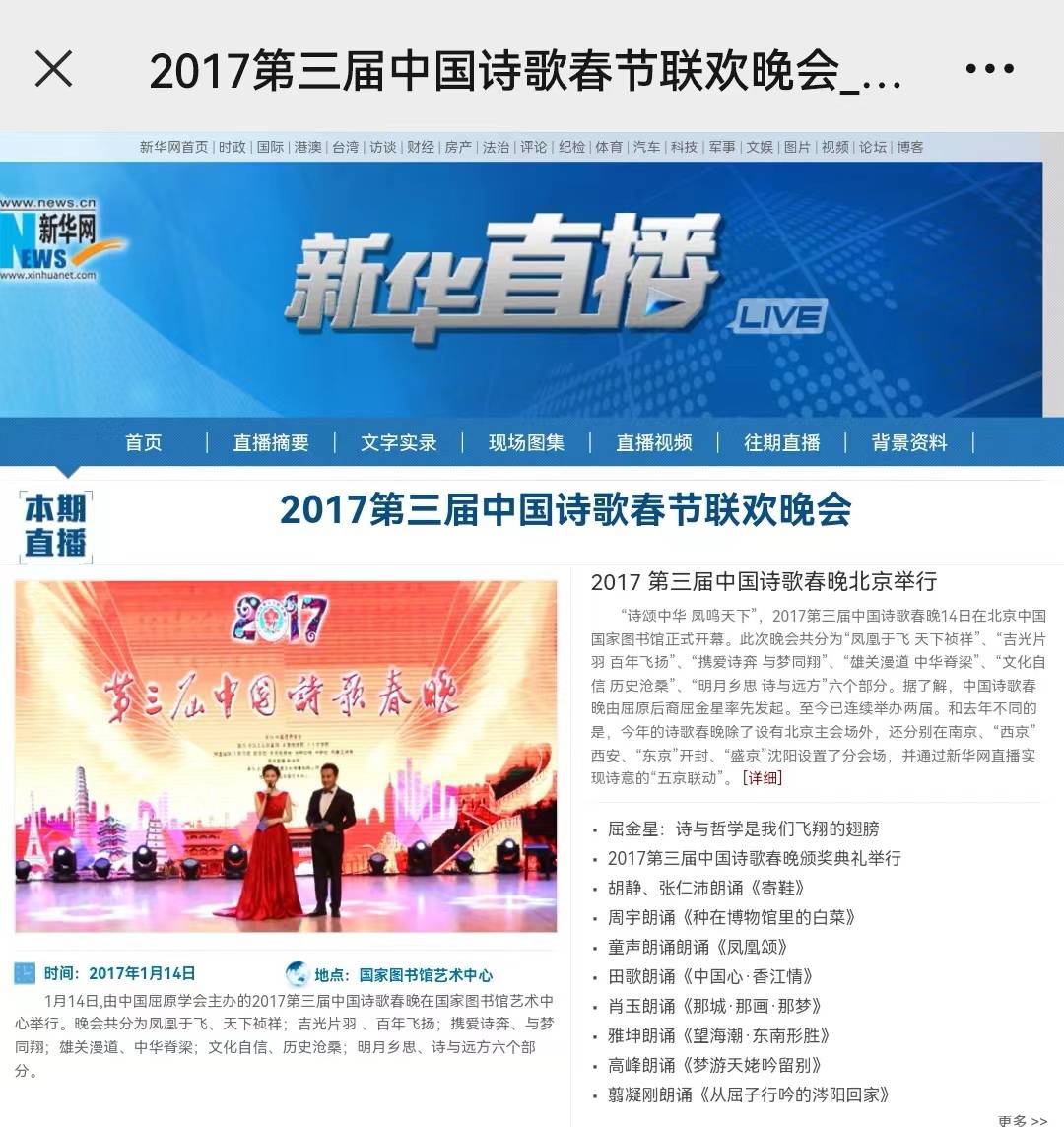 附历届中国诗歌春晚部分中央媒体报道截图。