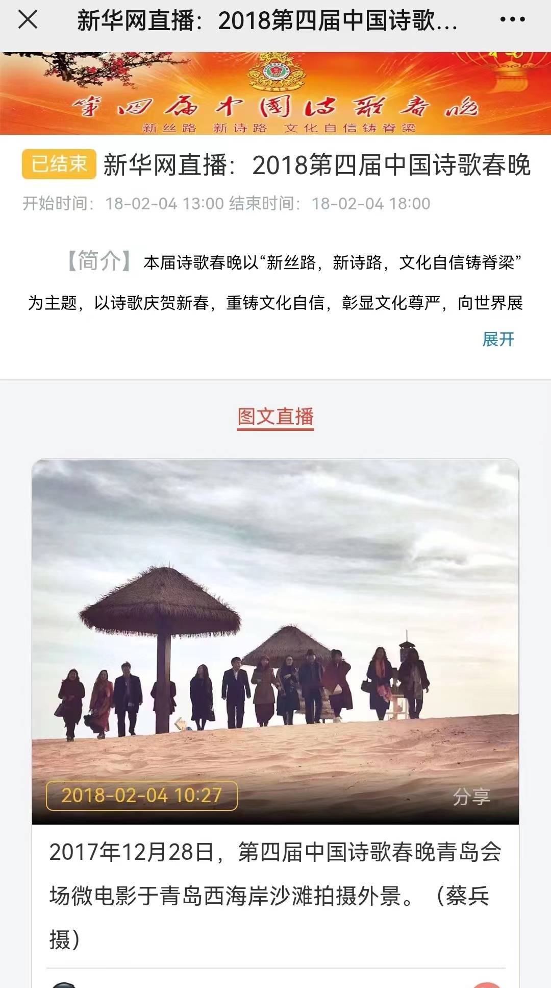 近期,郭敬将从北京飞赴新疆乌鲁木齐丝路国际滑雪场,屈金星驻守北京中国诗歌春晚组委会,在乌鲁木齐、北京设立两大策划传播中心,向全国乃至全球传播中国诗歌春晚丝路国际会场诗意的光芒。中国诗歌春晚包括北京、上海、广州、深圳、香港以及欧洲、加拿大等全球近百个会场将转发关注推广。