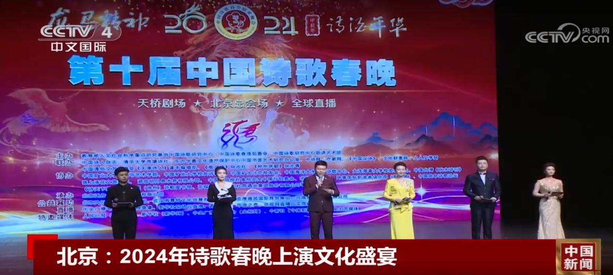 中国诗歌春晚创办于2015年春节前夕,在国家知识产权局进行备案,由首都师范大学中国诗歌研究中心、中国诗歌春晚组委会、中国诗歌研究中心朗诵艺术团等主办联办,迄今已成功举办十一届。2025第十一届中国诗歌春晚总会场曾在新疆阿勒泰举办,盛况空前。目前正在进行的是第十二届。