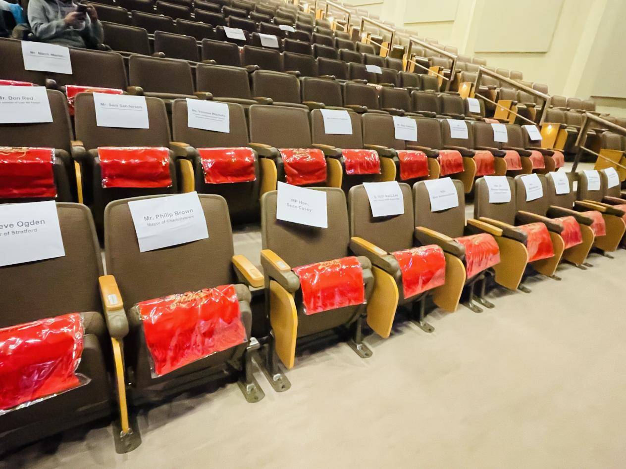 出席本次晚会的有加拿大爱德华王子岛省督瓦西姆•萨拉姆博士(Lieutenant Governor. The Hon. Dr. Wassim. Salamoun ),加拿大联邦议员肖恩•凯西(MP, Hon.Sean Casey),省社会发展与长者服务厅厅长芭芭拉•拉姆齐(Minister,Hon. Barb Ramsay),劳动力与高等教育和人口部副厅长麦瑞•亨特(Deput Minister, Mary Hunter, from Department of Workforce, Advanced Learning and Population),省长代表苏珊·迪伦(MLA. Susie Dillon),夏洛特敦市长菲利普•布朗(Philip Brown,Mayor of Charlottetown ),Stratford市长Steve Ogden(Steve Ogden, Mayor of Stratford ),思博学院CEO 黄硕,中华文化联合会会长张联以及各行业及社区领袖。