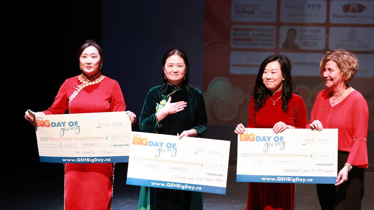 晚会现场举办了伊丽莎白女王医院基金会捐赠活动,皇家银行、粤菜馆、东西方书屋及华裔少年章湚祁分别向基金会捐赠了善款。许妍妍董事代表中华文化联合会向QEH基金会捐款,基金会CEO Trace Comeau及董事Monika Wang发言感谢。
