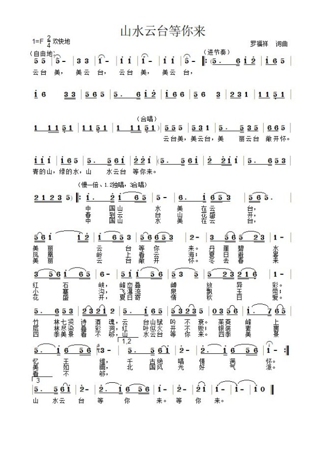 罗福祥说,按要求,诗人采风结束后都要写诗。我作为一名词曲作者,我创作一首既适合云台山大型诗会又有保留价值的歌曲《山水云台等你来》。