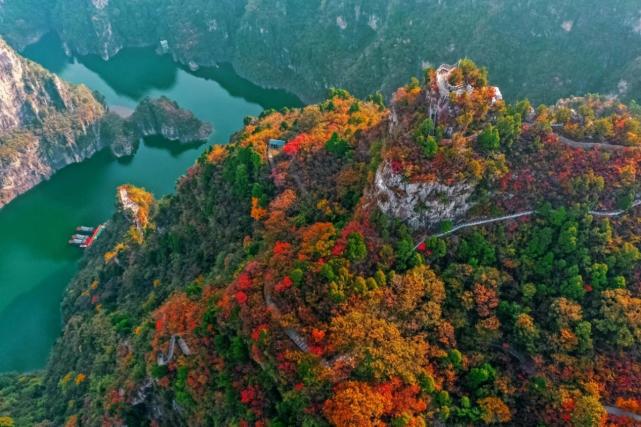 云台山景区茱萸峰海拔1298米,为景区主峰,因漫山茱萸,故名茱萸峰;又山形如釜倒扣,又名覆釜山。