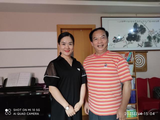 罗福祥与担任《山水云台等你来》女声版首唱的中国红歌会南昌总决赛优秀歌手、黄河艺术团青年演员彭舒合影