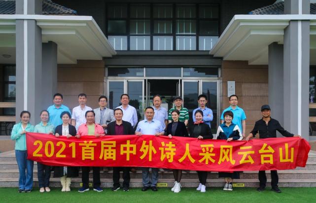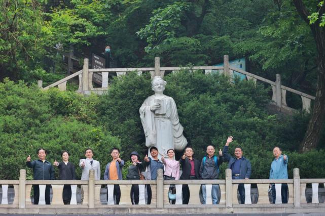 2021首届中外诗人采风团留影于云台山茱萸峰王维雕像
