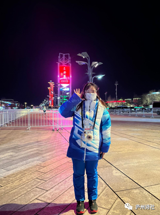 中国诗歌春晚大学生大使、北京2022年冬奥会和冬残奥会志愿者、中国矿业大学(北京)学生钟佳利参与冬奥会公共区志愿者《一起向未来》手势舞视频拍摄留影奥运村鸟巢