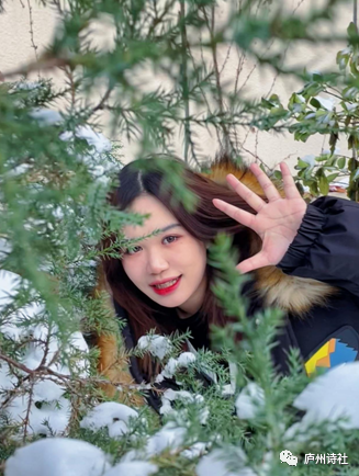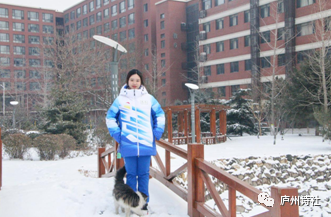 钟佳利雪中留影校园。