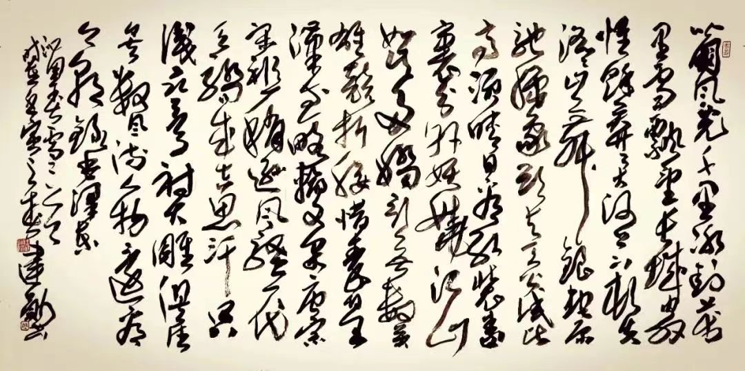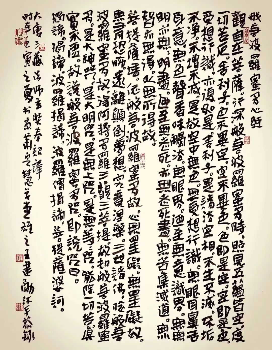 品读王建勋的书法作品,不难发现他对传统书法的继承,以及在碑帖融合的基础上自己另辟蹊径的踪迹,同时他把经、史、诗、禅融入到了作品之中,使得他的书法更加有内涵和张力,更为沉着深邃,形成了较宽的书路,达到了一种忘我的、无意而为之的书写状态。