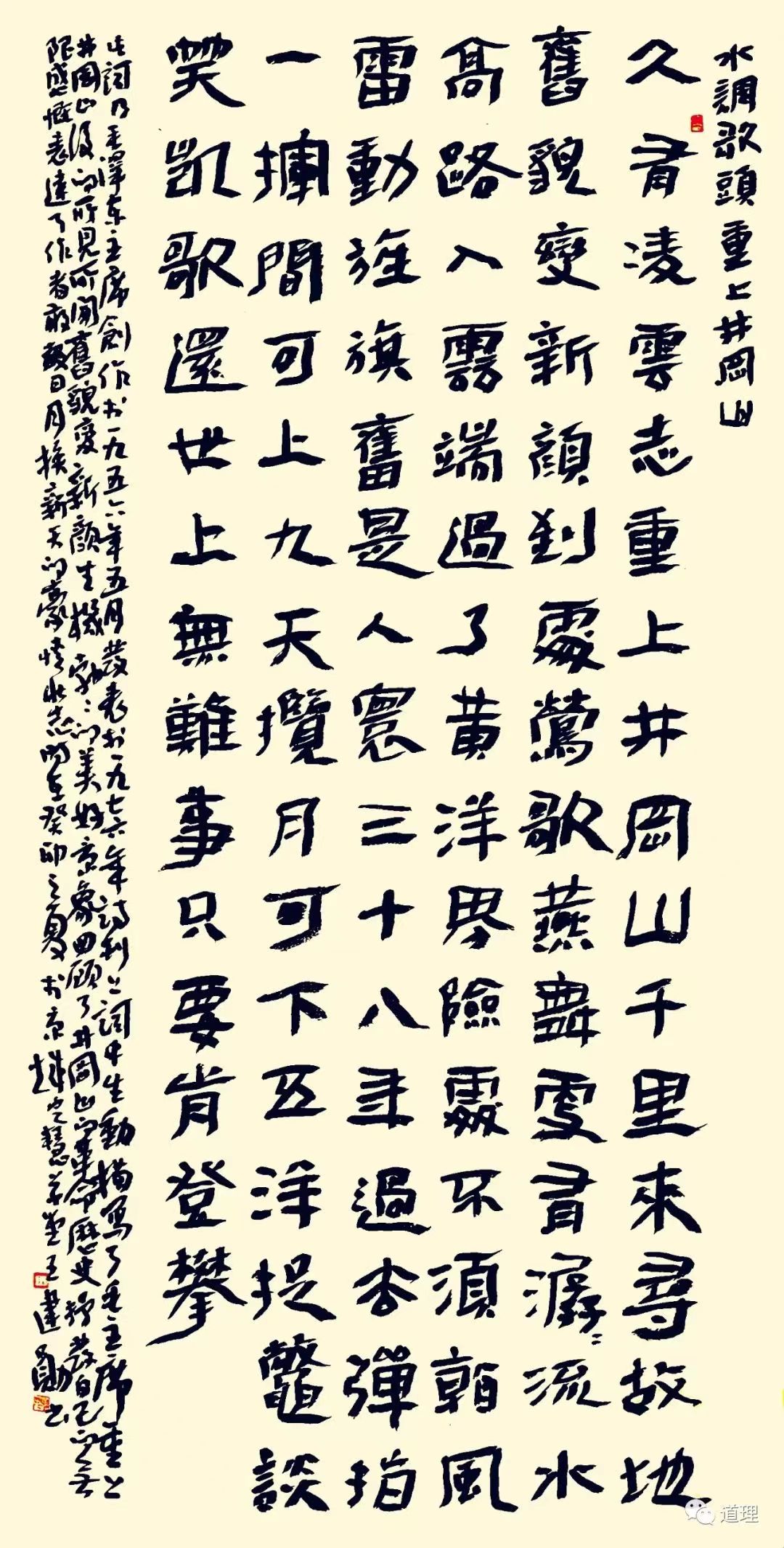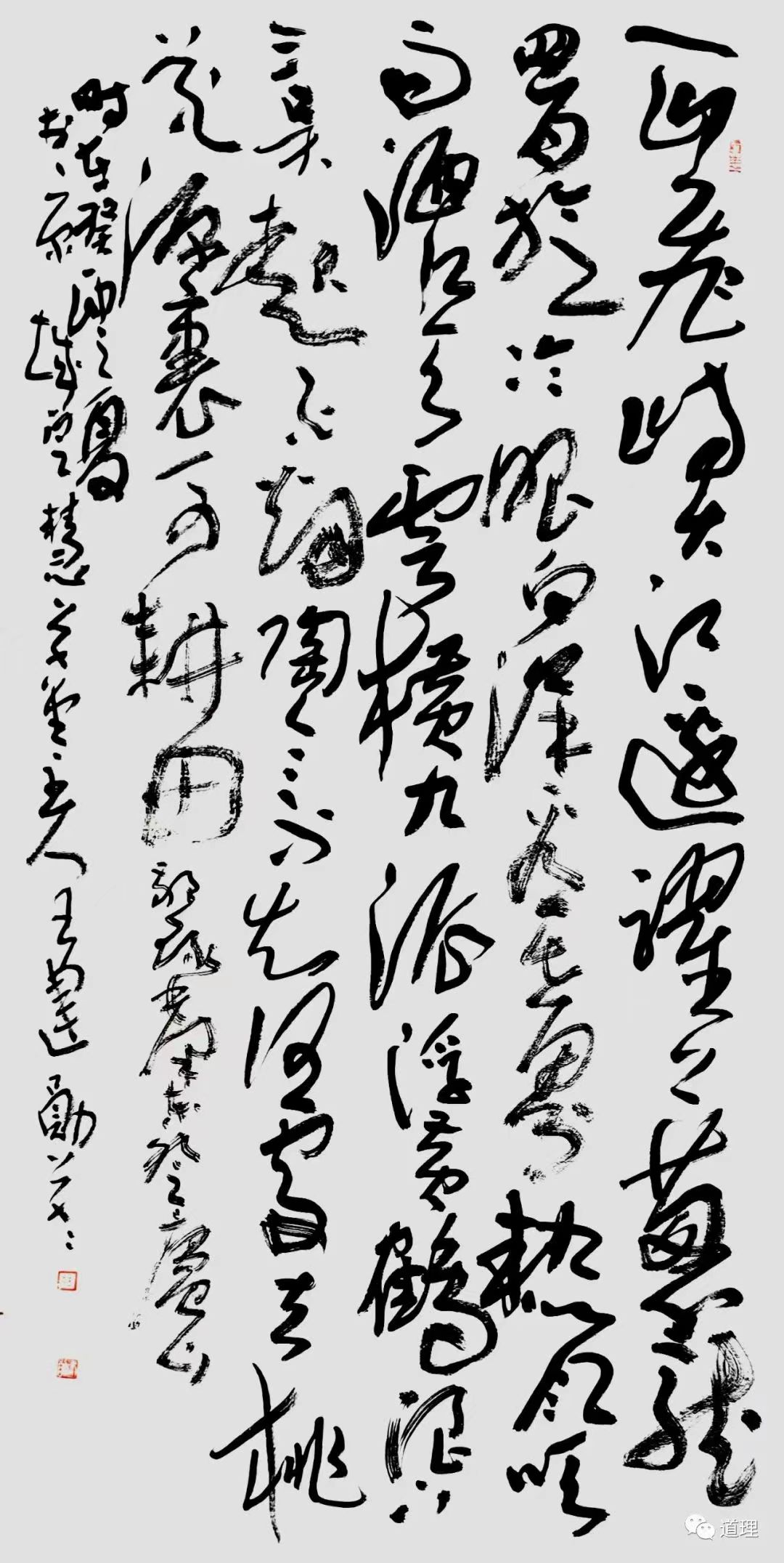 他认为:书法乃“书以载道”的艺术,“由技入道”则需要扎实的笔墨功夫。书法乃无声之音乐,纸上之舞蹈,又乃诗意之线条。余时常感叹我国传统文化之博大精深和碑帖经典之浩如烟海,唯时时“心慕手追”,穷毕生之精力,加超凡之悟性,方能“出新意于法度之中,寓妙理以豪放之外”。“道可道,非常道”,乃书法艺术的最高境界。
