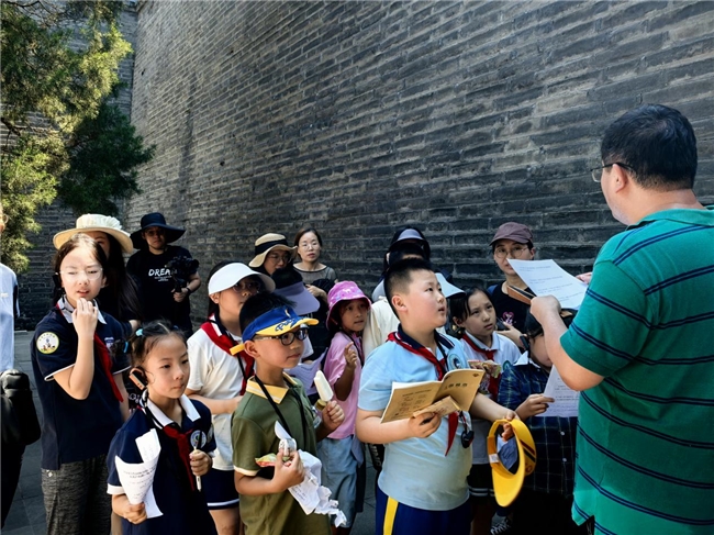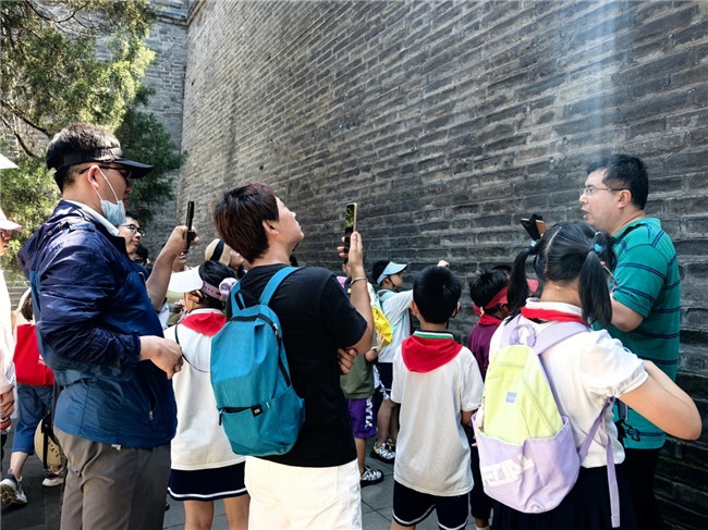 走进宛平城,勾超老师向大家展示了这里珍贵的老照片,对照着眼前的城墙讲解了过往历史——这里曾是拱卫京城的军事重镇,明清时商贾云集,抗战时期沦为主战场,城墙上至今留存有弹痕。大家漫步古城街巷,脚下砖石、斑驳城墙成了“活教材”,孩子们听得格外专注,抗日英烈的壮举仿佛在眼前浮现。