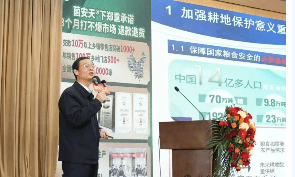 他称赞菌安天®下市场表现火爆,推广速度快、效果好,离不开老总的带领,也离不开经销商队伍的辛勤付出,让田地与庄稼真正用上了优质产品。他说:“三年前开始的合作示范已在十二个省份二十多个县城落地,验证了产品效果并加速推广。菌安天®下使用简单方便,拌种与喷施均可操作,老百姓容易掌握。在大田与粮油作物上,应用后普遍实现增产百分之二十五,且具备强大的抗逆性,能够应对前期干旱、后期涝害,同时抗旱、抗涝、抗病。尤其是今年面对小麦晚播,土壤湿度大,杂菌多等不利条件,拌种应用菌安天®下可有效应对,为提升产量打基础。”