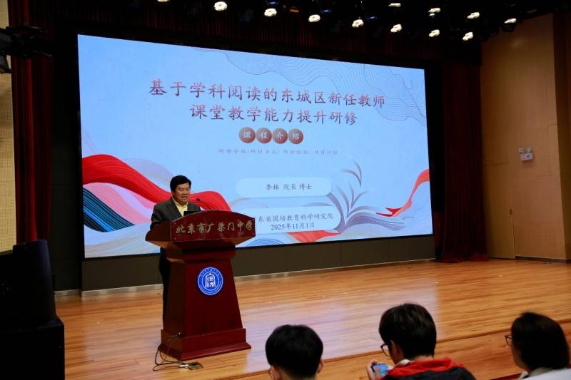 2025年11月1日上午,基于学科阅读理念的东城区新任教师课堂教学能力提升研修开班仪式在北京市广渠门中学隆重举行。本次活动由北京市东城区教育科学研究院主办、广东省国培教育科学研究院承办、北京市广渠门中学协办,旨在通过专项培训提升入职1-2年的新任教师的阅读教学能力与学科核心素养培养水平,推动东城区教育高质量发展。研修活动由东城教科院常洁云老师主持。