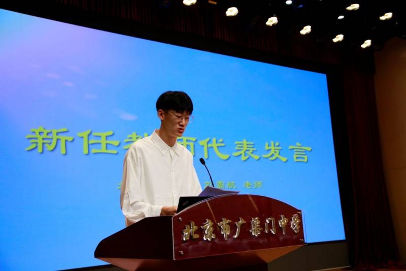 随后,由北京汇文中学的刘矞航老师作为新任教师代表进行了发言。刘矞航老师分享了自己在教学设计大赛中自己将阅读与物理实验相结合的经验,利用AI技术辅助学生理解抽象概念的经验,给在座的老师与专家留下了深刻印象。最后刘矞航老师希望通过研修活动继续提升自身教学能力,并规划在后续的学习过程中逐步完善物理学科知识图谱的梳理,在专家的指导下并平衡课堂教学中阅读与知识讲授的比例,更加灵活多样的应用AI工具辅助教学,形成“阅读+实验+AI”的教学模式。
