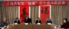 于谋勇创制福寿合文书法座谈会在京举行 本报讯 由中国书法家协会老年工作委员会、山东省书法家协会共同主办的于谋勇创制福寿合文书法座谈会,于2013年12月14日下午在北京国家会议中心举行。中国智能交通协会理事长吴忠泽,中国书协分党组书记、驻会副主席赵...