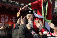 11月18日,河南开封清明上河园内,打扮成包公的工作人员向游客赠送诗集《开封颂》遭疯抢。当日,诗集《开封颂》举办现场赠书活动,活动倡导者武占英和诗作者屈金星、李俊鑫、孔令伟等到现场助阵。千行抒情史诗《开封颂》近日由中国文联出版社出版发行。中新...