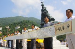 现场展示由屈金星创作、王文恺书写的《屈原颂》20米书法长卷,并敬献中华屈氏第一村万古寺村。三峡商报记者 何宝喜 摄 屈原铜像揭幕仪式。三峡商报记者 何宝喜 摄 屈家明接受捐赠。三峡商报记者 何宝喜 摄 传承端午文化 弘扬屈原精神 屈原后裔屈金星诗祭屈原...