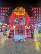 七夕东北不夜城神仙眷属祝福天下有情人 本网讯 七夕前夕,吉林梅河口东北不夜城《穿越梅河》中一对神仙眷属刘蓓、王旭手捧北京著名书法家柳国庆榜书福字,祝福天下有情人福星高照,永结同心。 神仙眷属刘蓓、王旭在东北不夜城福祝天下有情人。 刘蓓、王旭在...
