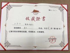 日前,阜阳市博物馆新馆开馆后,为市民提供了大量珍品文物,提供了极大的欣赏价值,同时也收藏了一批优秀艺术家的作品。书法家王长征作品两幅被阜阳市博物馆收藏,将纳入阜阳市博物馆永久性收藏。 据了解,王长征现为中国通俗文艺研究会副秘书长,全国碑拓文...