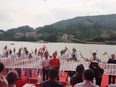本网讯7月1日,在楚辞之源湖南怀化第三届溆浦县大江口.大端午龙舟文化节开幕式上,屈原后裔、中国诗歌春晚总策划、总导演屈金星先生捐赠由中国诗歌春晚书画艺术顾问、中国书协会员、知名中青年书法家王文恺创作的百米书法长卷《屈原颂》。溆浦县委副书记、溆...