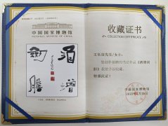 4月25日,青年诗人王长征的书法《酒增剑胆 》被中国国家博物馆收藏,并颁发收藏证书。这是他近年来书法创作所取得成绩的充分肯定。王长征现为中国通俗文艺研究会副秘书长、中国书画创作研究院副院长、新安书画院副院长、皖南民俗博物馆顾问等。其书法作品相...