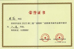 近日,第二届德翔杯迎新春书画作品展入展作品揭晓,安徽书法家周丽作品成功入...