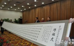 4月3日,由唐代大书法家柳公权后裔、著名书法家柳国庆书丹的辛卯年轩辕黄帝故里拜祖大典拜祖文十米书法长卷展示暨捐赠仪式在郑州举行。4月5 日,该长卷亮相黄帝故里拜祖大典仪式现...